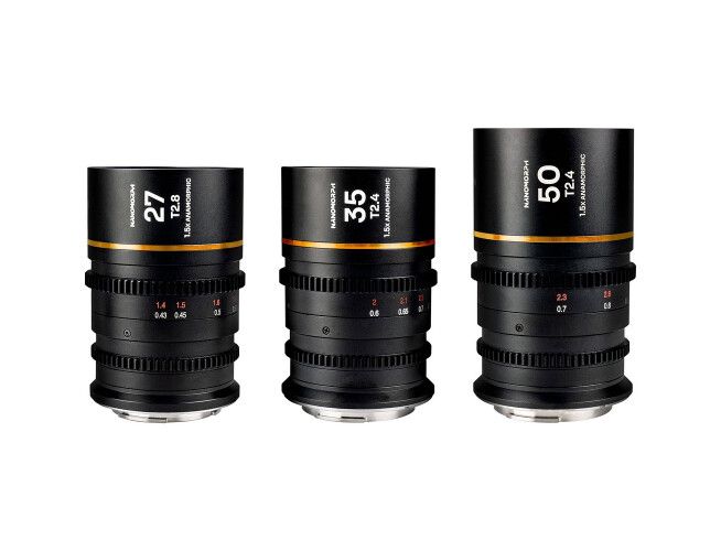 De Laowa Nanomorph 27, 45 en 50 mm 1.5x S35 Anamorfische lenzen van Venus Optics zijn slanke, compacte anamorfische lenzen die high-definition video vastlegt met 1.5x anamorphic squeeze op camera's met S35-sensoren. In deze bundle zitten lenzen die beschikken over brandpuntsafstanden van 27, 35 en 50 mm, een Fuji X-lensvatting, een diafragmabereik van T2.4 of 2.8 tot T16 voor een diepe scherptediepte en 13 irislamellen voor een kleine scherptediepte en zachte bokeh.