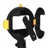 - Plaats voor 2 standaard flitsers of 1 flitser met ronde kop.
